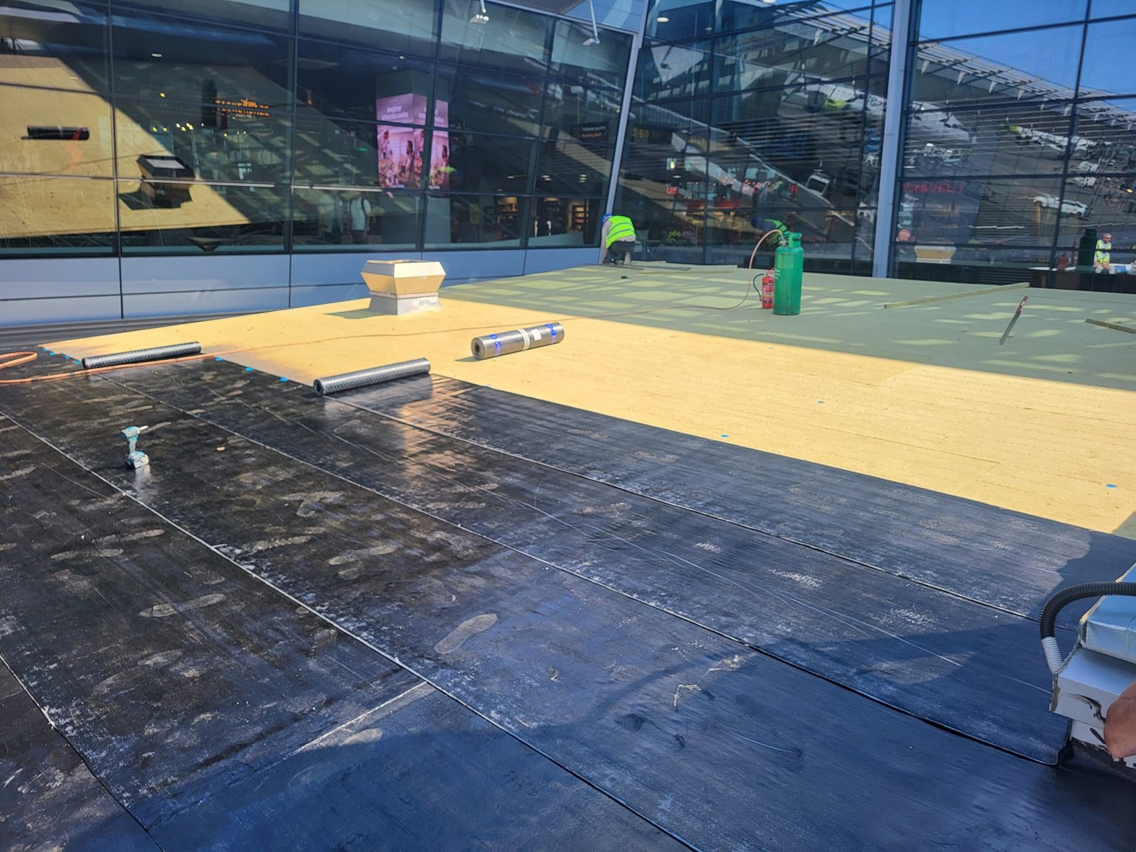 Pasūtītājs: SIA “P.M.G.”Adrese: Starptautiskā lidosta Mārupe, Mārupes novadsVeiktie darbi: Jumta seguma ieklāšana darbi